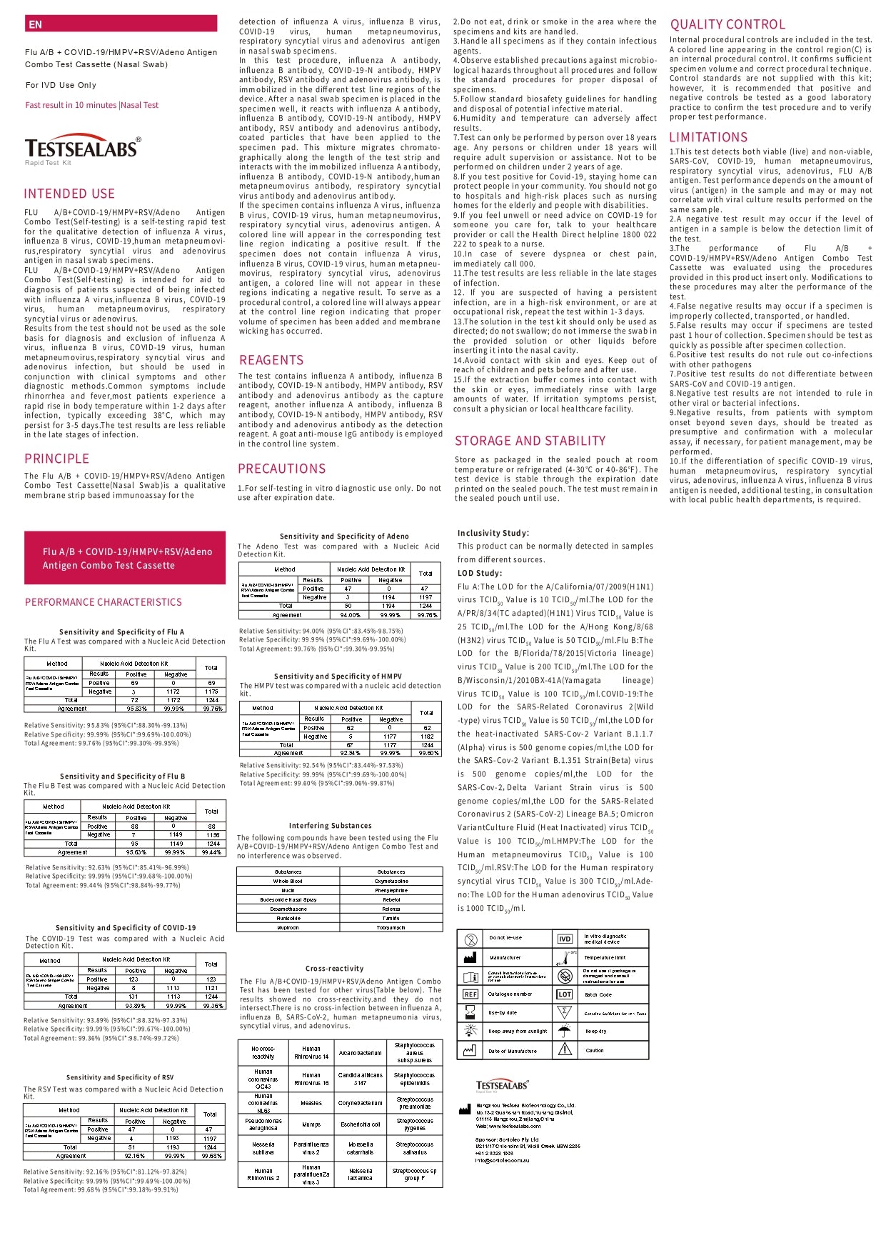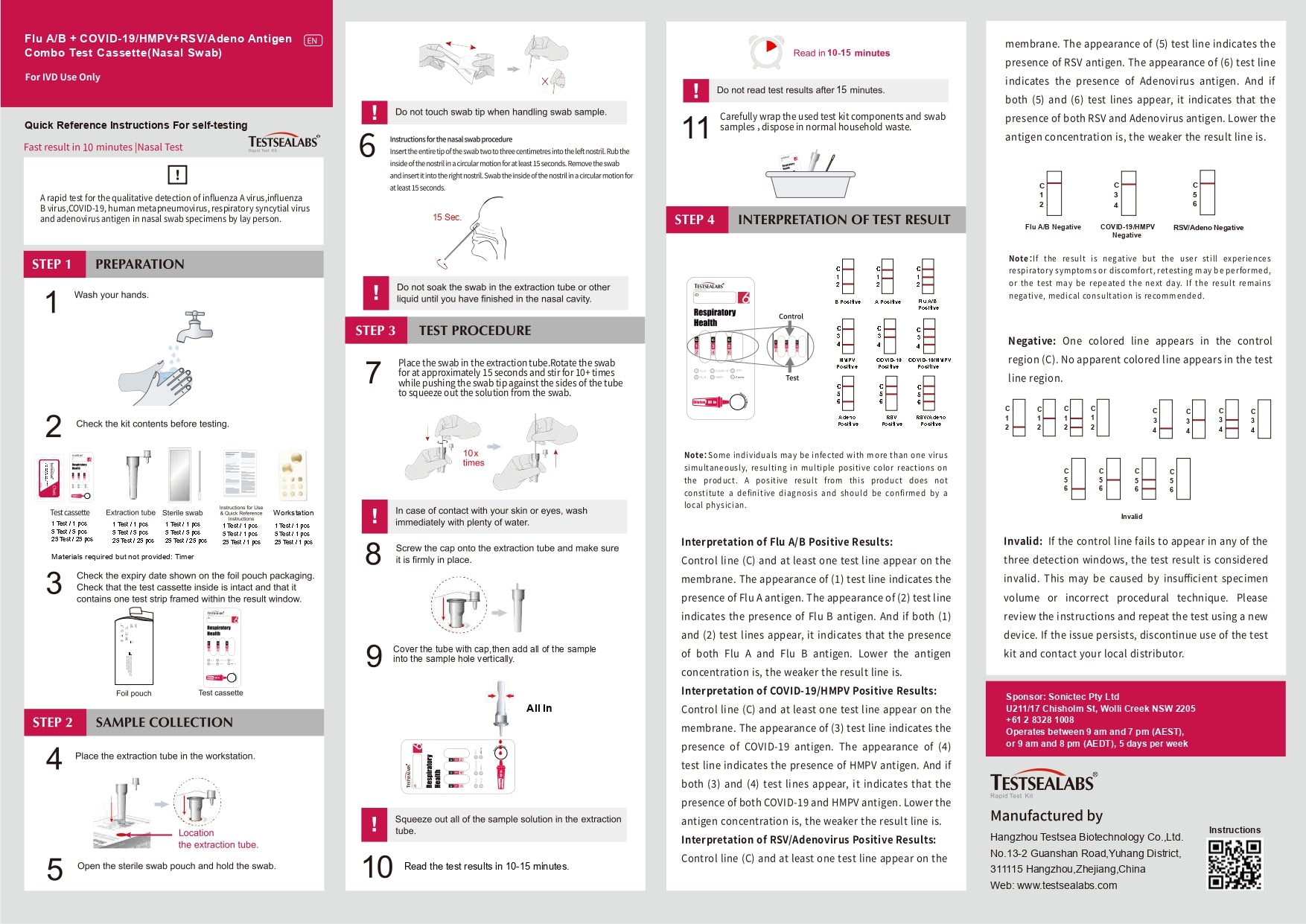 FLU A/B +COVID-19/HMPV+RSV/Adeno Antigen Combo Test Casette Nasal Swab.